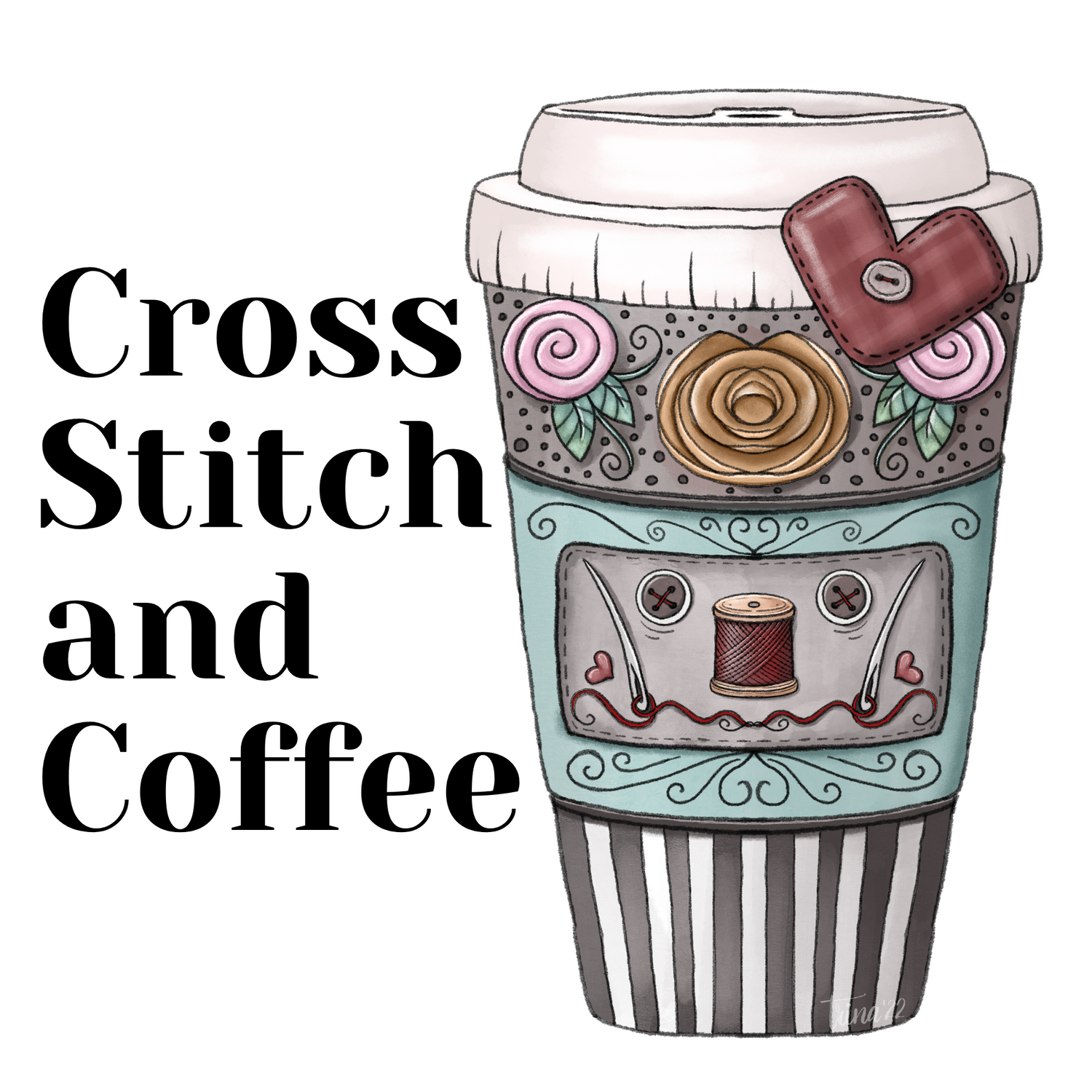 Cross Stitch And Coffee Zipper Pull/ Mini- Fob